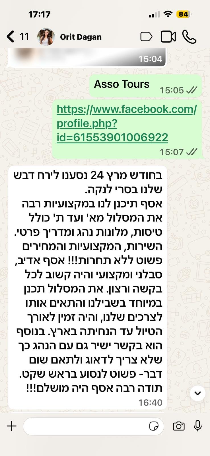 אני מלווה אתכם מהשיחה הראשונה ועד סוף הטיול, בקשר ישיר ואישי, ודואג לכל פרט קטן.