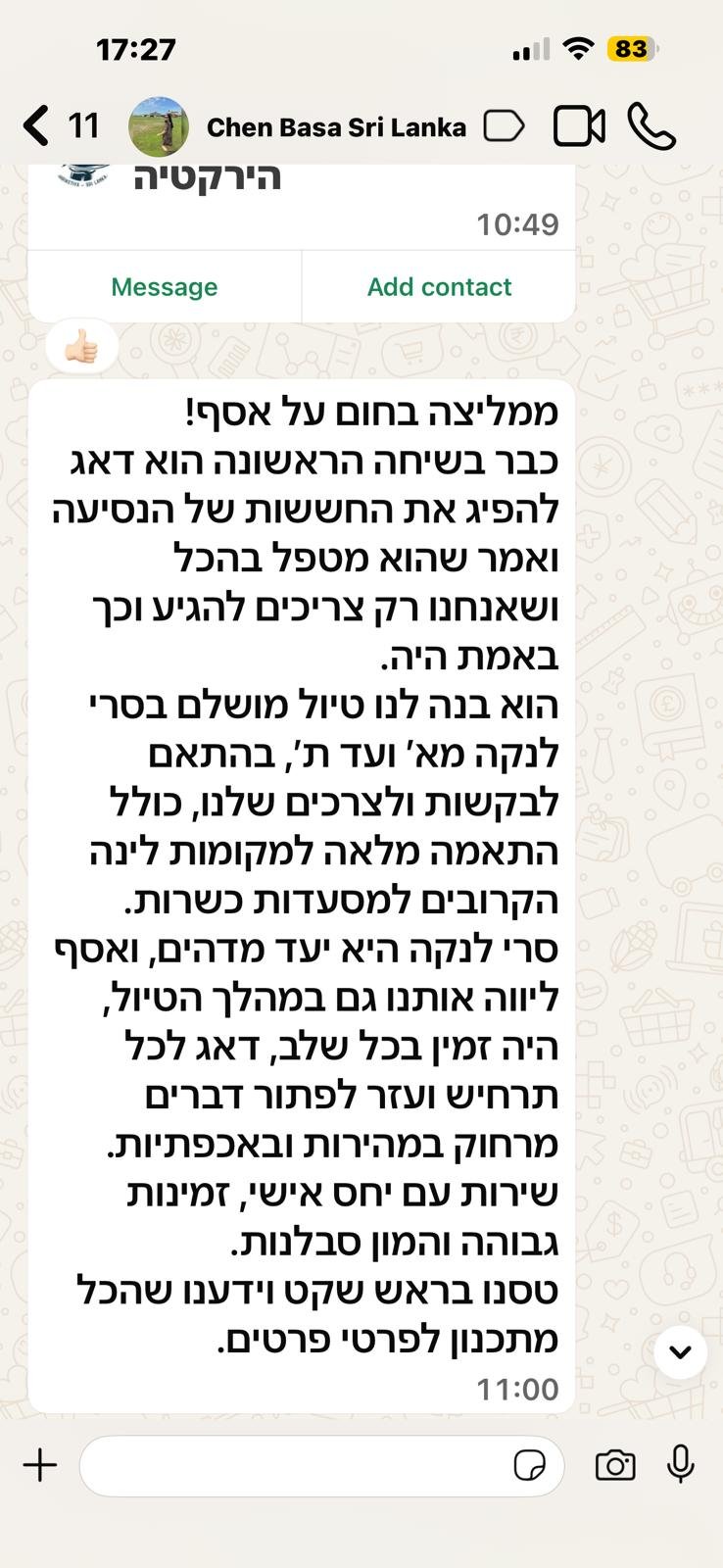 אחרי שנים שבהן תכננתי טיולים לעצמי, למשפחה ולחברים, החלטתי להפוך את התשוקה למקצוע. היום אני סוכן תיירות עצמאי מתמחה בתכנון טיולים בהתאמה אישית לסרי לנקה – לא טיולים מאורגנים, אלא מסלולים שתפורים בדיוק לפי הרצונות, התחביבים והקצב שלכם.